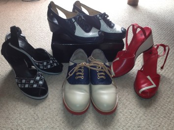 A recent clear out resulted in three in the dustbin, 16 off to the local charity shop and just 57 pairs left (not counting the trainers and knee high boots). Once I discovered the world of vintage it was just a matter of time before vintage footwear began to appear in my footcloset. I use that term lightly as I actually mean new/reproduction – footwear is like underwear – too personal to have had a previous owner as far as I am concerned!