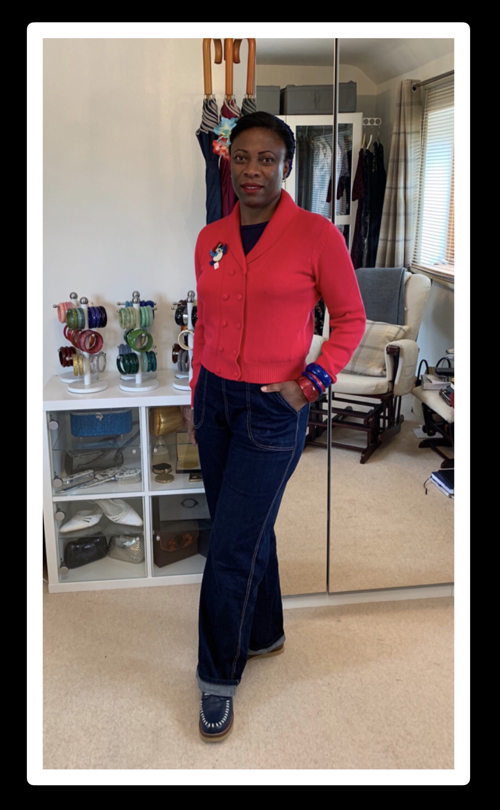 I’ve been asked many times if I ever dress down. The answer is of course yes. But even then I’ll be attired in 1950s style. I love high waisted trousers and jeans with buttons down the side. I throw on knitted tops or twinsets – no effort required at all, yet I’ll still be in keeping of my style and still feel well dressed, if not quite as smart as I like to be.
