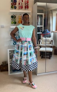 One of my most creative dresses with a gathered skirt was the Diner dress I made specifically to go with my shoes. Breaking the first rule of purchasing fabric “do not order fabric when half asleep” meant I hadn’t read the information properly about panel width. So when it arrived and I realised the panels were not going to go wide enough I had to get creative otherwise I was looking at a very short pencil dress.