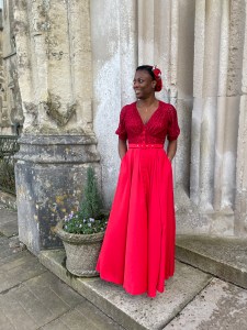 I’m a lady who loves her 50s style circle skirts and dresses – so a floor-length fairly straight dress was never going to immediately draw my eye.